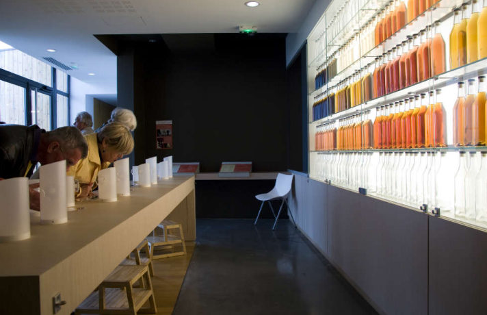 At La Maison de la Vigne et des Saveurs, Cognac World origins are explained to visitors through a scenography dedicated to the AOC, crus and varieties of vines’ history, but also growth cycles of vines, Cognac and Pineau production as well as vine and cooperage related professions. A wall covered in shades of local spirits, a fun and interactive olfactory display and quotes from local authors to read or listen are set up to awake the mind and senses.