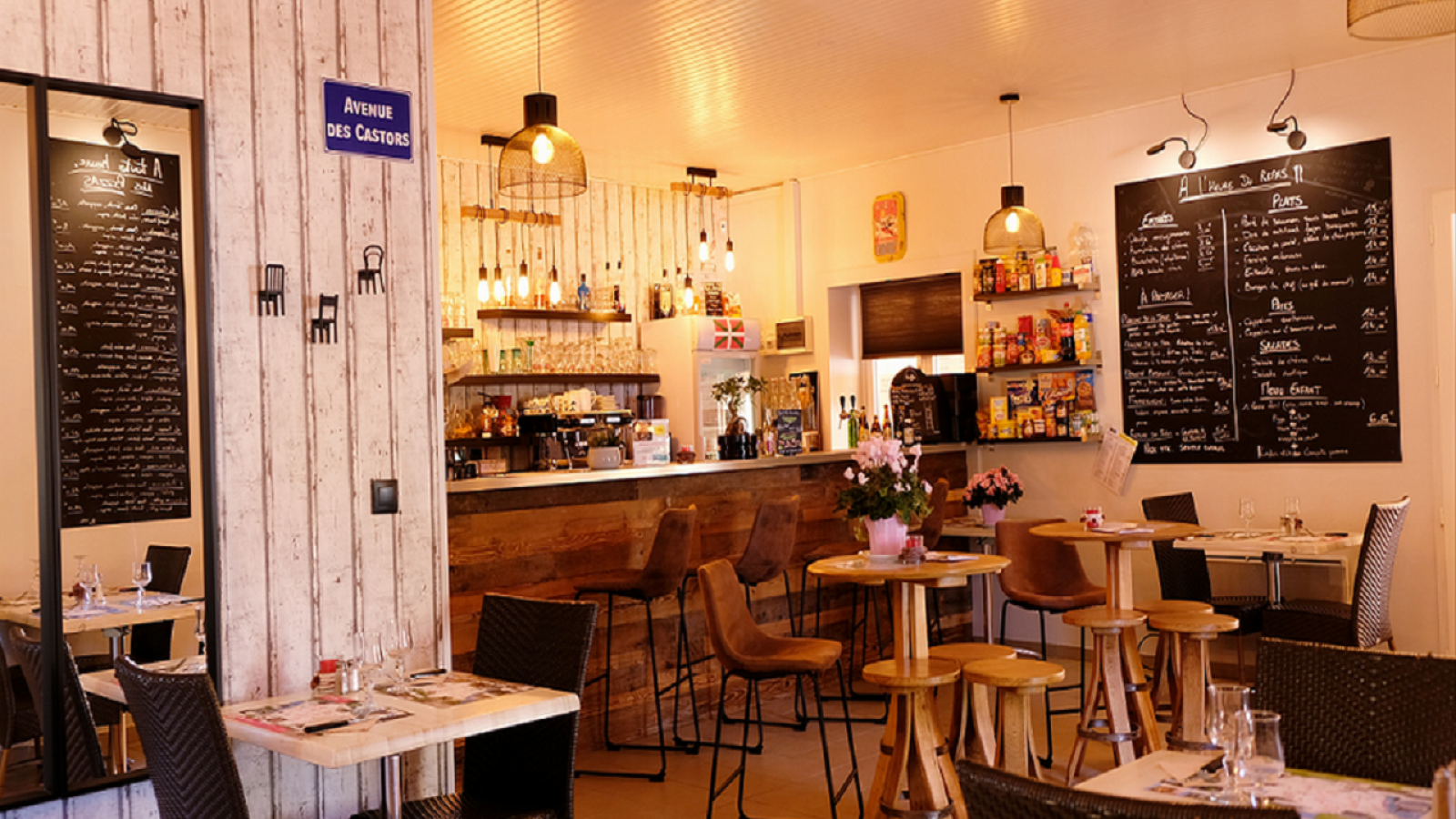 Open to all, the Castors campsite restaurant offers traditional cuisine, homemade pizzas and takeaways. Traditional cuisine, lunch menus and daily specials during the week, homemade pizzas on site or to take away (to order), homemade French fries. Outdoor terrace, themed evening dances open to all. Theme evenings and dinner dances by reservation only.
